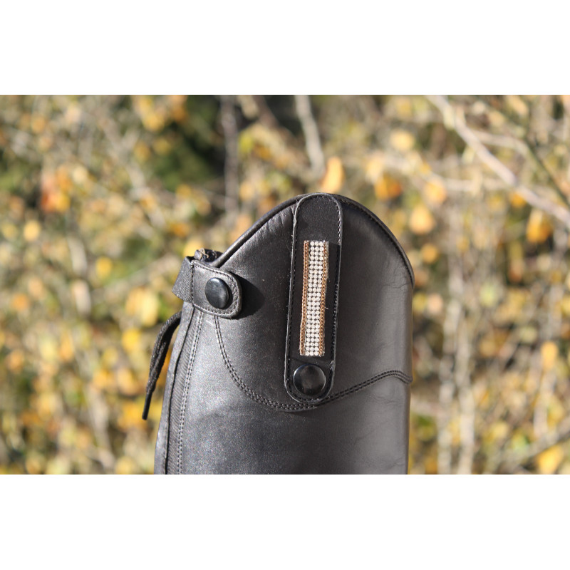 Cela fait plus de 2 ans que je monte avec ses bottes( 1 paire pour les entraînements et 1 autre pour les concours). Je les adore et avec les bijoux je les personnalise pour chaque épreuves ❤