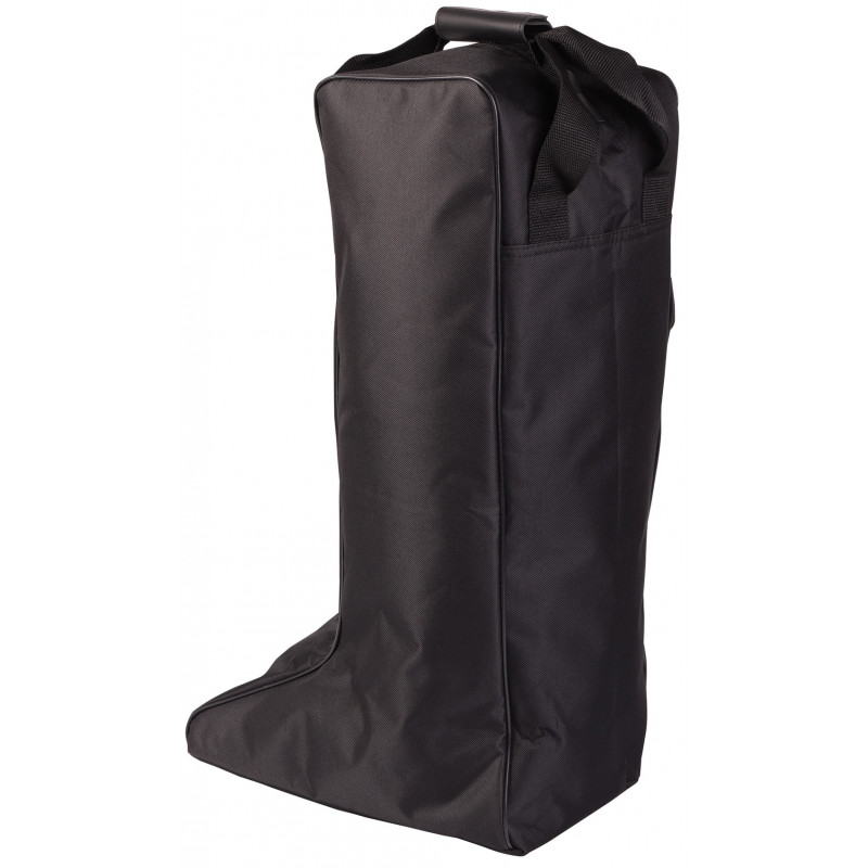 Sac à bottes noir en nylon avec double fermeture à glissière, poche latérale avec fermeture et poignées.