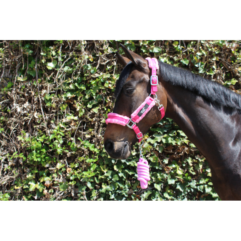 Ensemble Licol + longe recouvert de fausse fourrure douce.