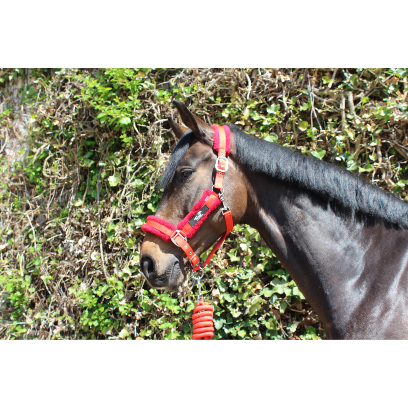 Ensemble Licol + longe recouvert de fausse fourrure douce.
